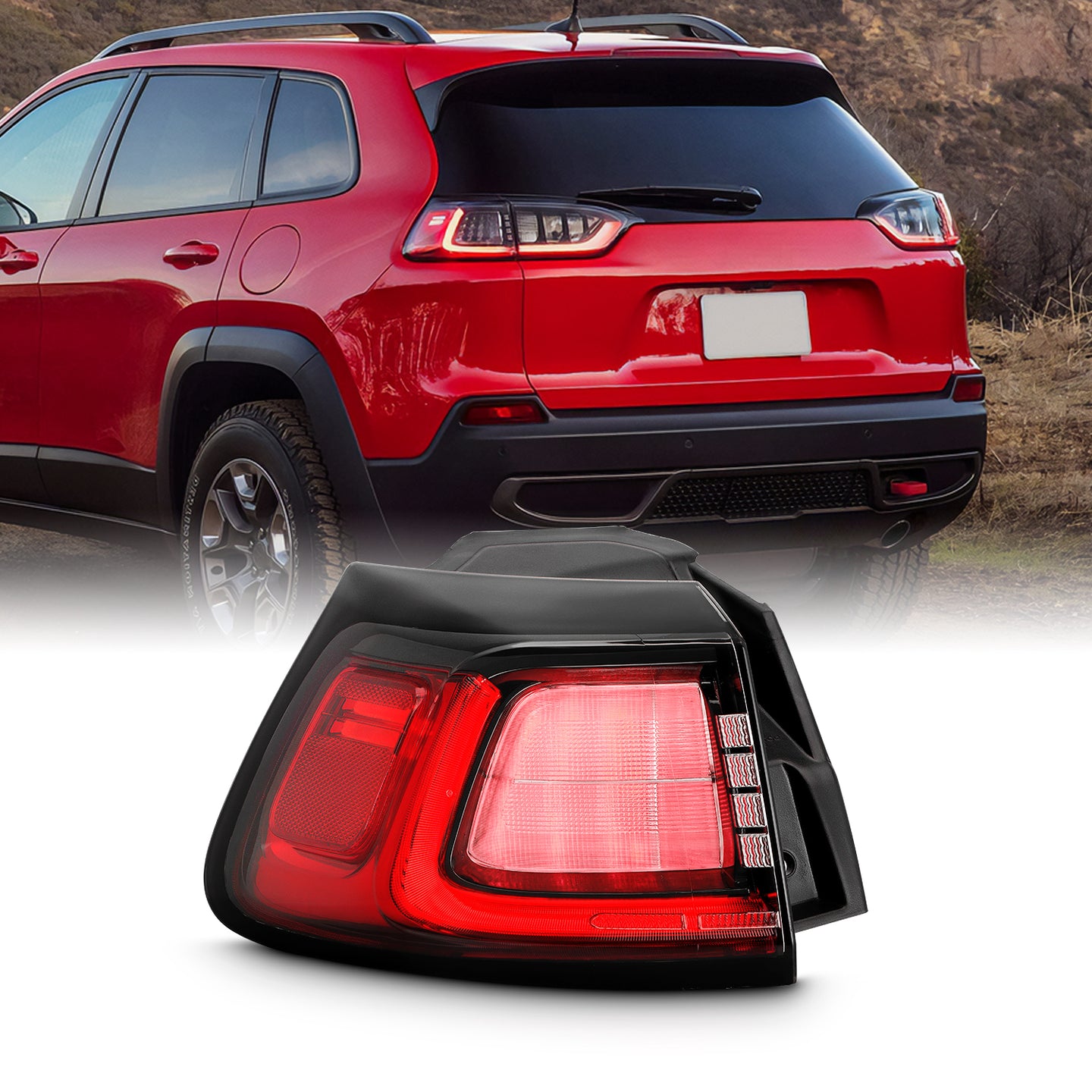 AKKON - Fit 2019 2020 2021 2022 2023 Jeep Cherokee 19-23 LED Tail Light OE Style Clear Lens Red Housing Outer Rear Brake Lamp Driver Left Side Replacement
