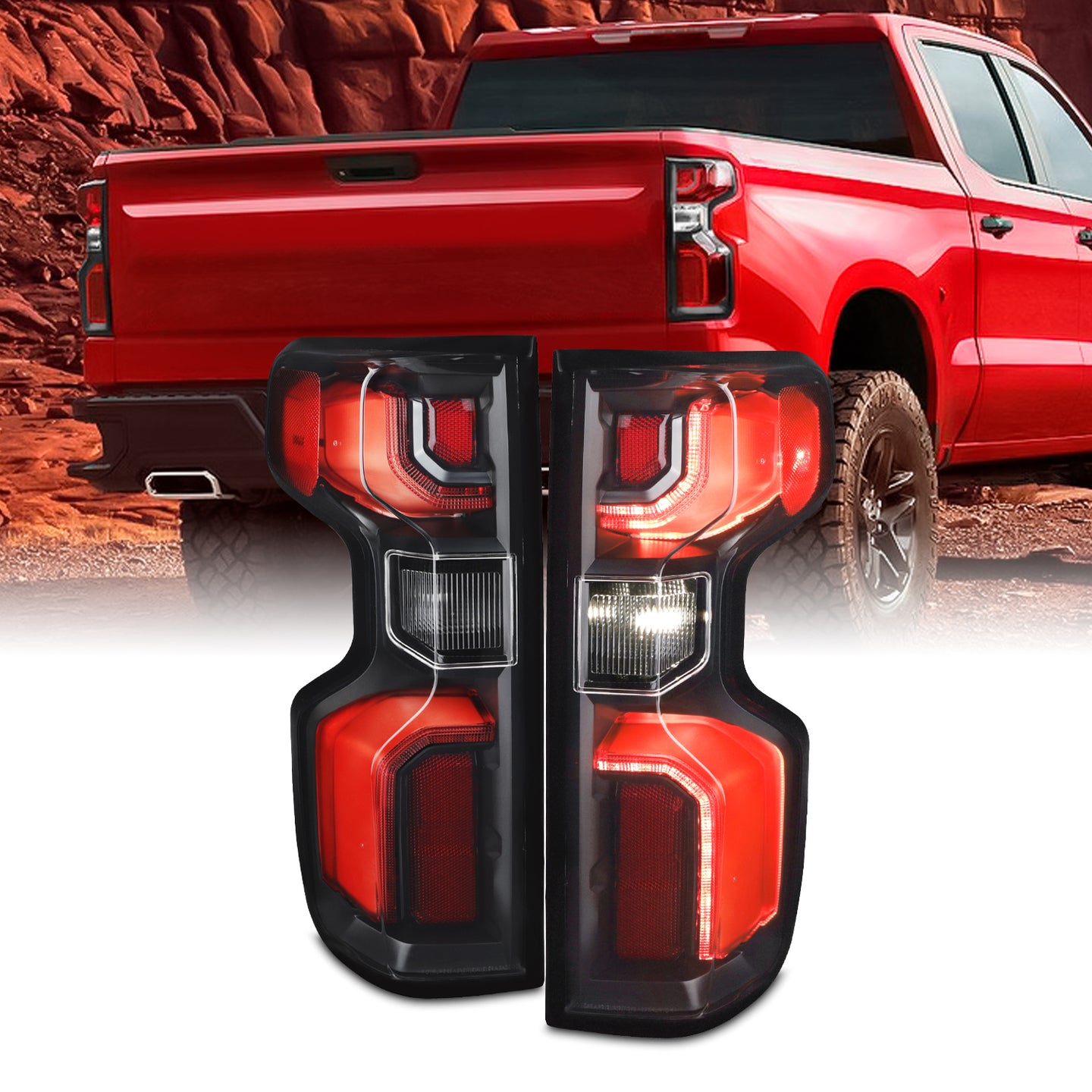 AKKON - Fit 2019 2020 2021 2022 2023 Chevy Silverado 1500/2500 [Incandescent Upgrade] LED Tail Lights w/Harness & Running Lamp Black Set