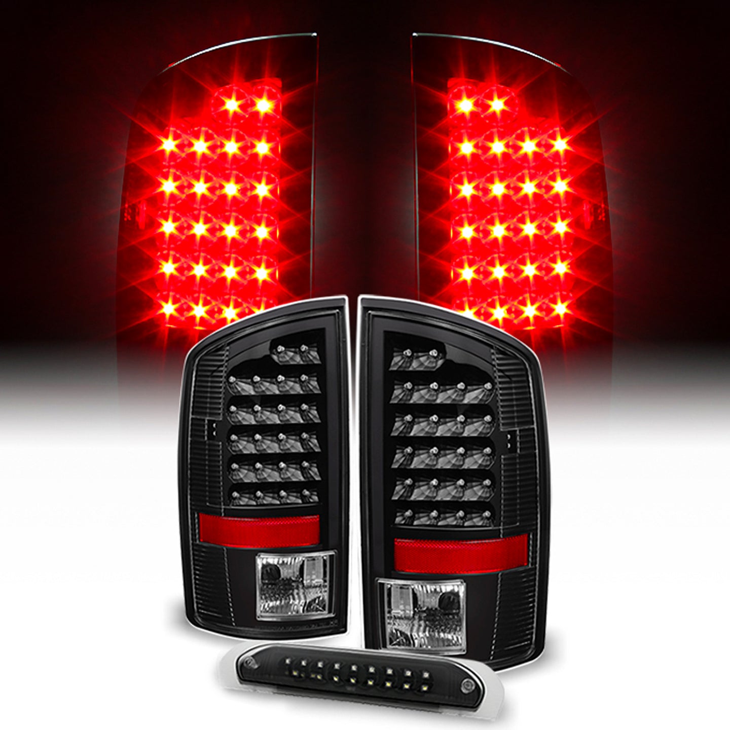 AKKON - For Black 07-08 Dodge Ram 1500 07-09 Ram 2500 3500 Truck LED Tail Lights + 3rd Brake Lights Cargo Lamp
