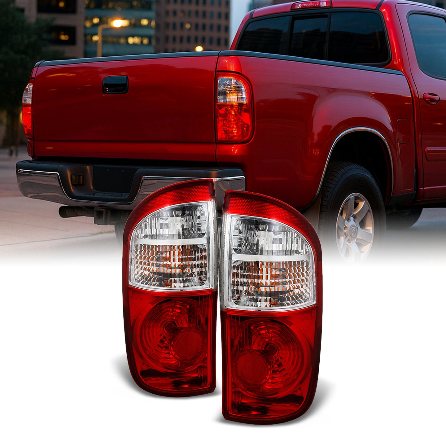 AKKON - For 04-06 Toyota Tundra 4 Door Double Cab Pickup Truck Red Clear Tail Lights Replacement Left + Right Pair Set
