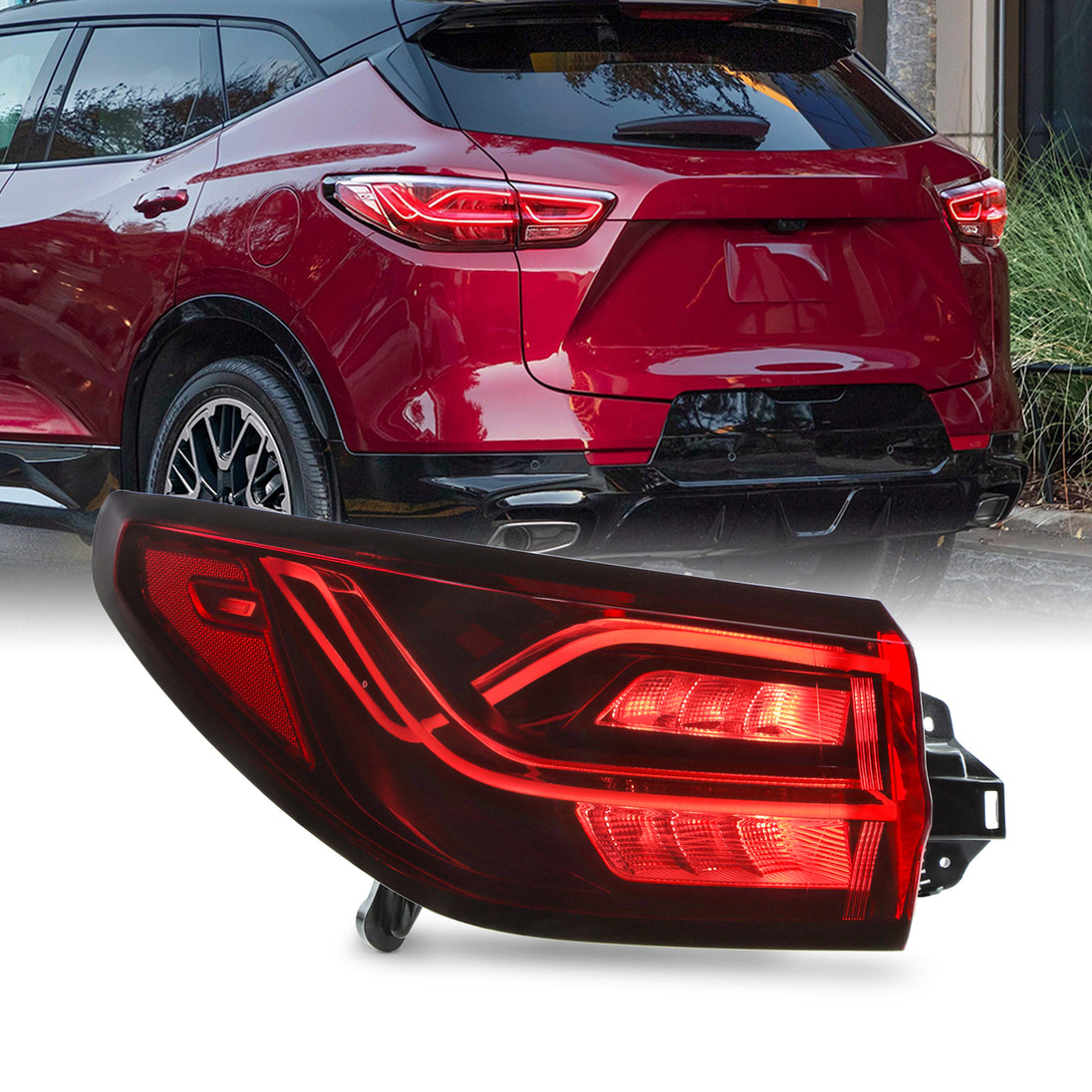 AKKON - Fits 2023-2025 Chevy Blazer Black Red Tail Light Outer Driver Left Side w/ Full LED Running Brake Turn Signal