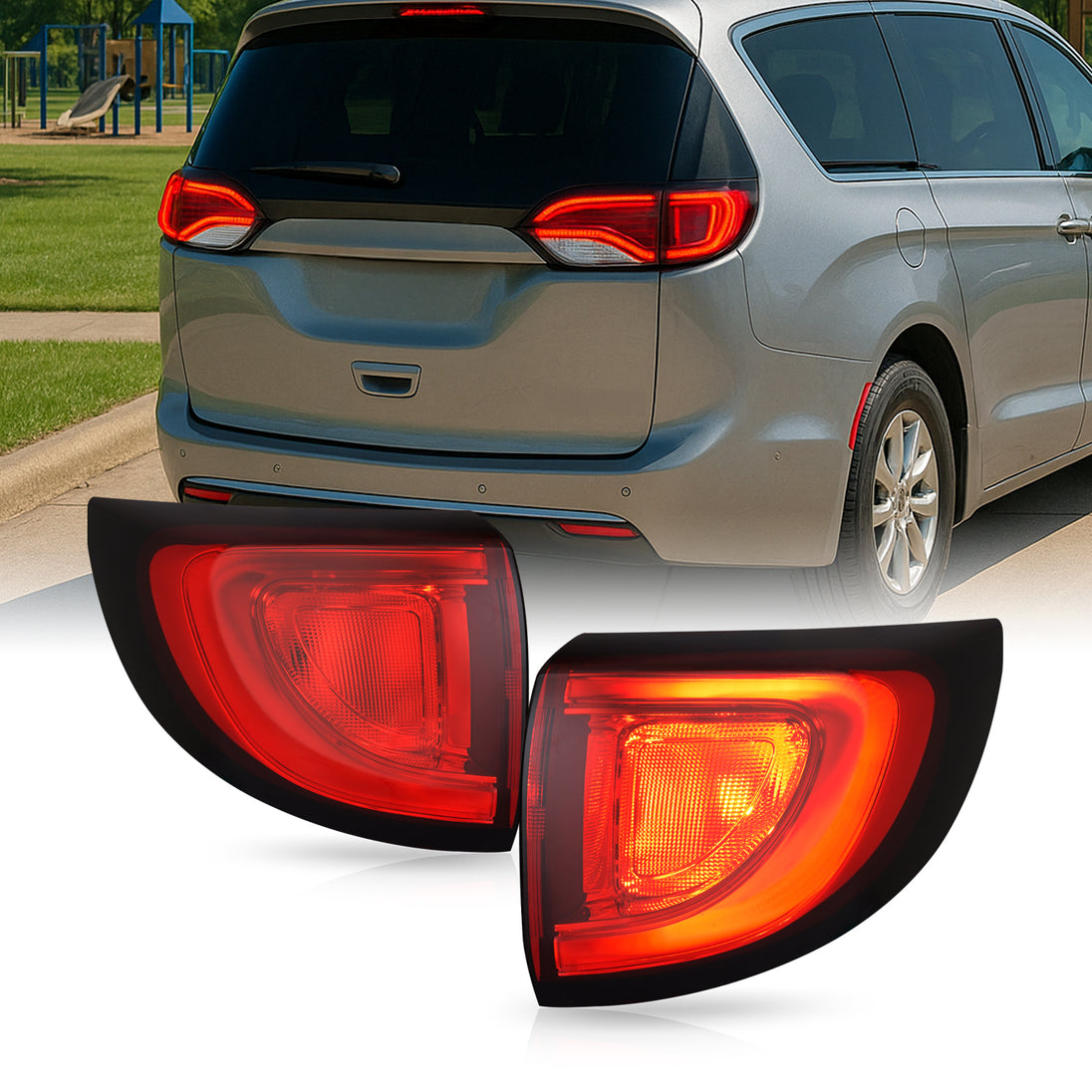 AKKON - Fits 2017-2022 Chrysler Pacifica 20-21 Voyager LED Chrome Red Tail Lights Outer Pair w/ LED Running Turn Signal