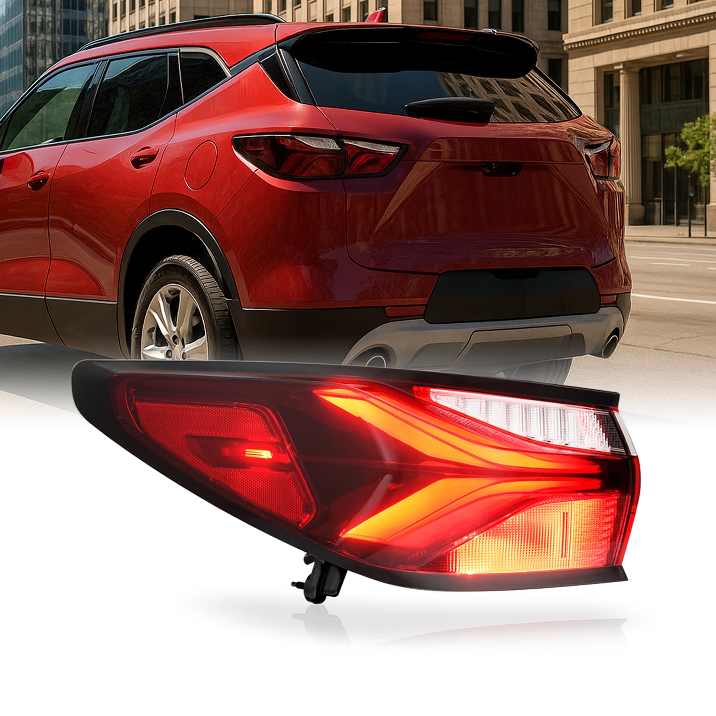 AKKON - Fits 2019-2022 Chevy Blazer Chrome Red Tail Light Outer Driver Left Side w/LED Tube DRL Running + Turn Signal