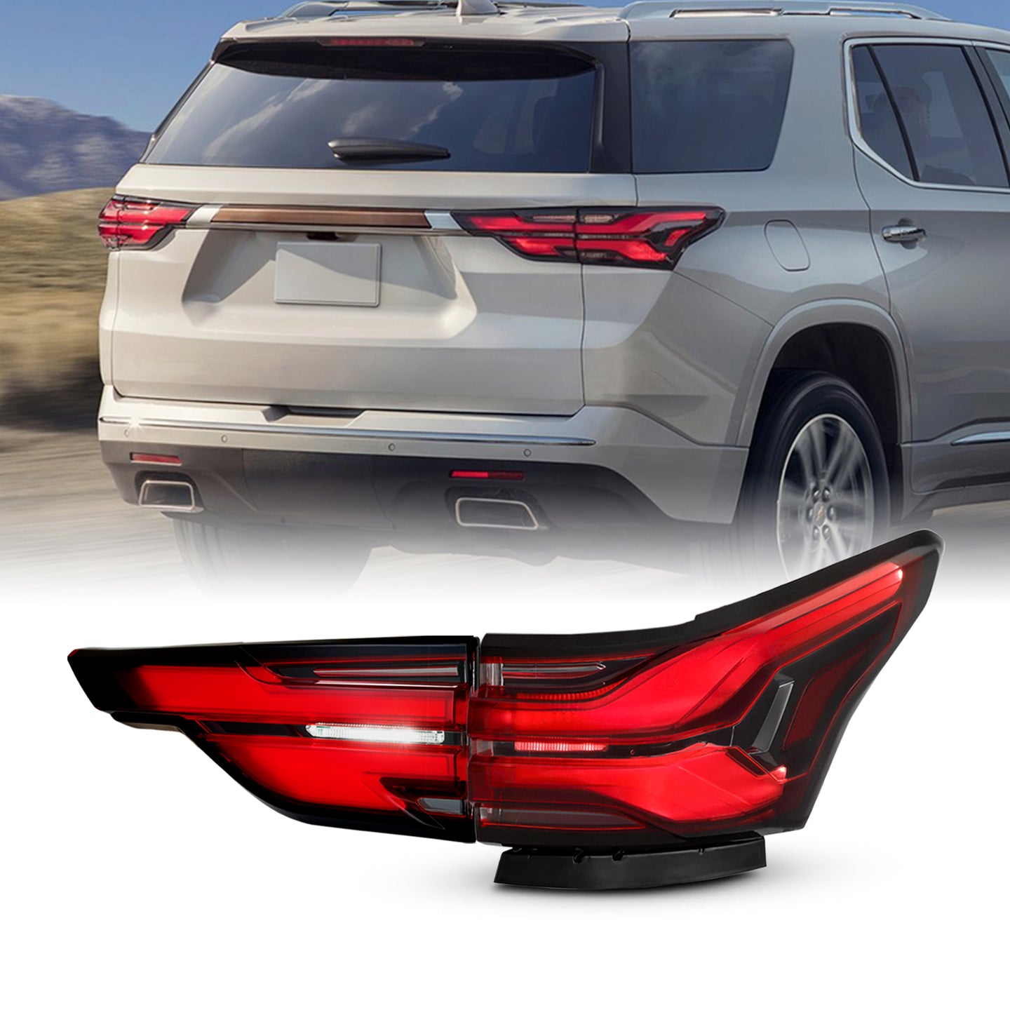AKKON -Fit 2022 2023 2024 Chevy Traverse Full LED Black Red Tail Light Passenger Right Side 2pcs Inner+Outer Replacement