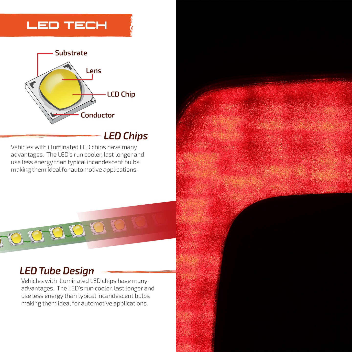 This is a 100% brand new piece of Replacement LED Tail Light in Chrome Housing with Red Clear Lens