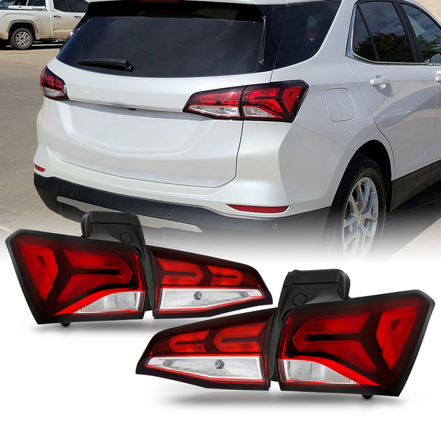 AKKON - Fit 2022-2024 Chevy Equinox [Halogen Type] Chrome Red Brake Tail Lights Outer+ Inner 4Pcs Pair Driver+ Passenger