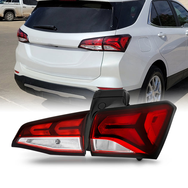 AKKON - Fits 2022 2023 2024 Chevy Equinox [Halogen Type] Chrome Red Brake Tail Light Outer + Inner 2Pcs Driver Left Side