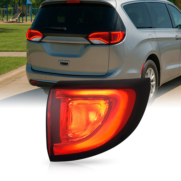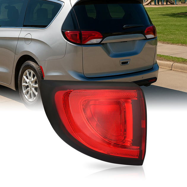 AKKON - Fits 2017-2022 Chrysler Pacifica 20-21 Voyager [Halogen Type] Chrome Red Brake Tail Light Outer Driver Left Side