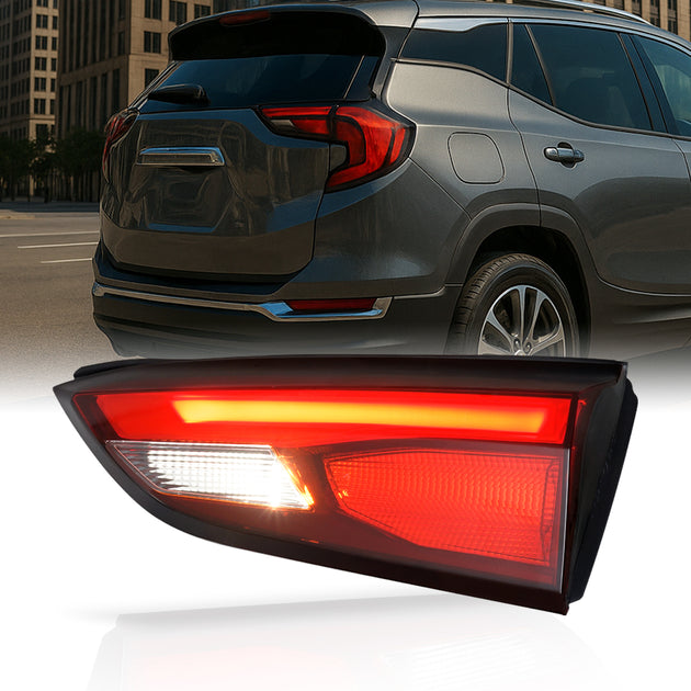 AKKON - Fits 2018-2023 GMC Terrain Denali Chrome Red Tail Light Inner Driver Left w/ LED Tube DRL Running + Turn Signal