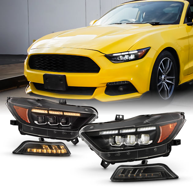 AKKON - Fit 2015 2016 2017 Ford Mustang LED Headlights With Bumper Lights Greeting Light Animation Sequential LED Turn Signal Black Driver Passenger Side