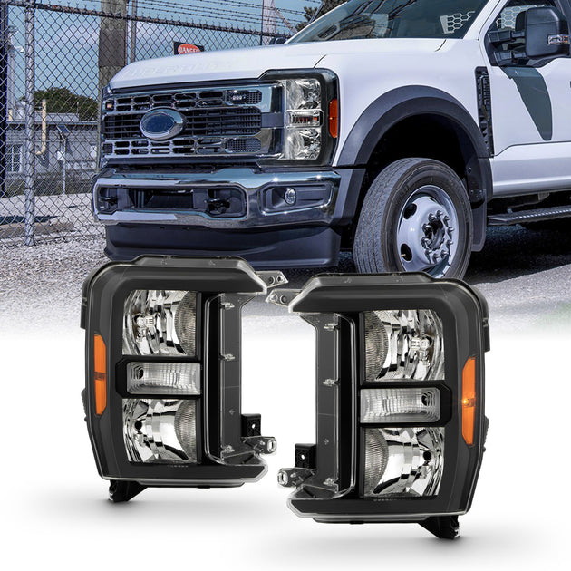AKKON - Fit 2023 2024 2025 Ford 250 F350 F450 F550 F650 SuperDuty Halogen Type Headlight Headlamp Black Housing Driver - Passenger Direct Replacement