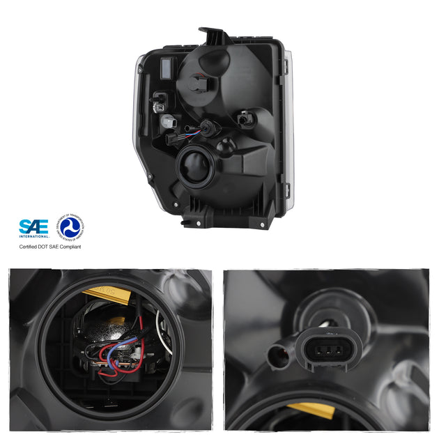 AKKON - Fit 2008-2014 Ford E150 E250/ E350-E450 SuperDuty 08-19 / F650 F750 16-17 w/LED DRL Projector Headlights Headlamp Black Housing Replacement Pair
