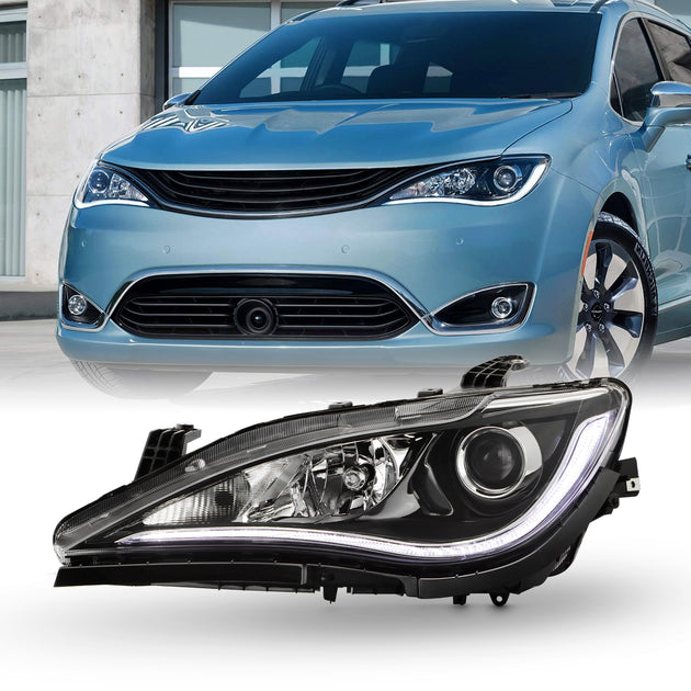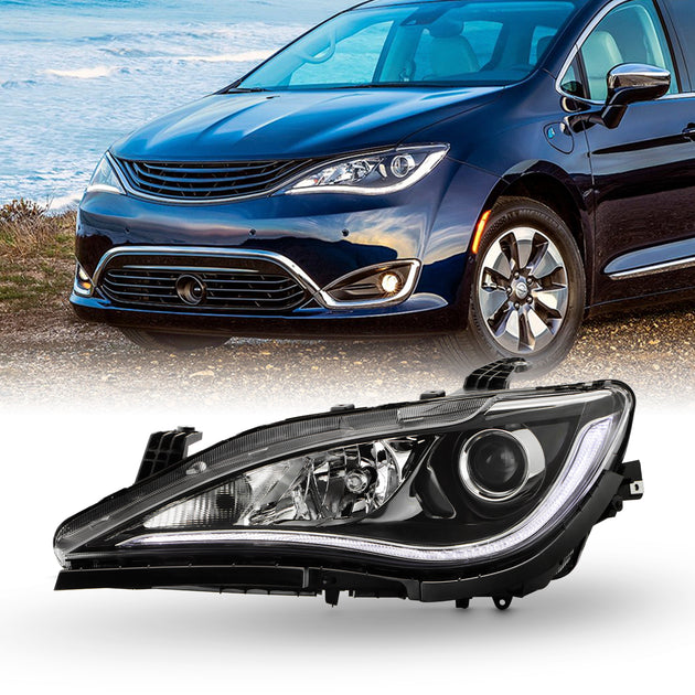 AKKON - Fit 2017 2018 2019 2020 Chrysler Pacifica 17-20 Halogen w/ LED DRL High Quad Lamp Chrome Trim Headlight Headlamp OE Style Driver Left Side