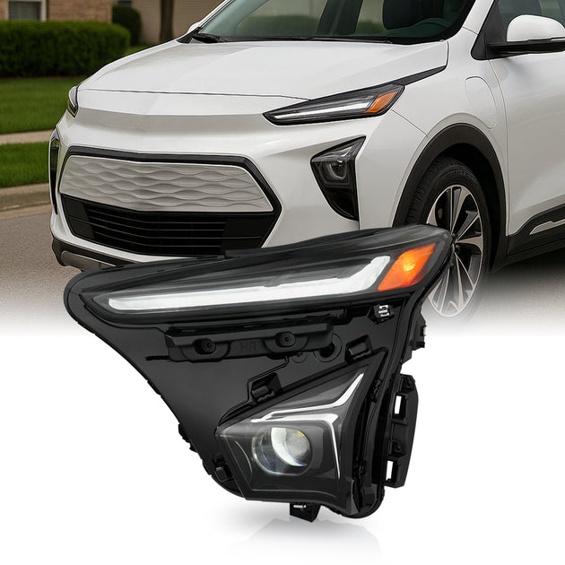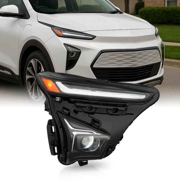 AKKON - Fit 2022 2023 Chevy Bolt EUV 22-23 [Full LED] Projector Headlight Headlamp OE Style Drive Left Side Direct Replacement Black Housing