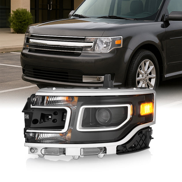 AKKON - Fit 2013-2019 Ford Flex 13-19 Xenon|HID w/LED DRL Black Housing Projector Headlights OE Style Driver - Passenger Direct Replacement