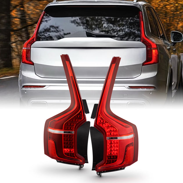 AKKON - Fits 2016-2024 Volvo XC90 Full LED Running Brake Signal Chrome Red Tail Lights Pair Driver Left+Passenger Right