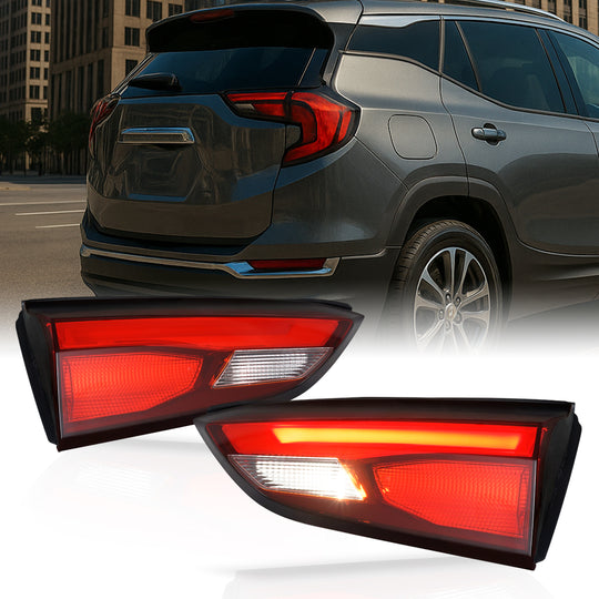 AKKON - Fit 2018-2023 GMC Terrain Denali Chrome Red Tail Lights Inner Pair Left+Right w/LED Tube DRL Running+Turn Signal