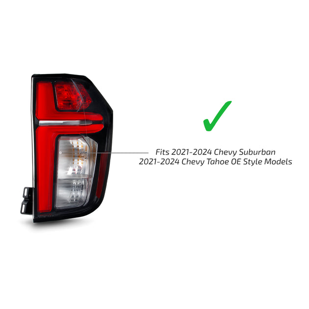 AKKON - Fits 2021-2024 Chevy Suburban Tahoe FULL LED [Yukon Style] Black Tail Light Pair +SwitchBack Running Turn Signal