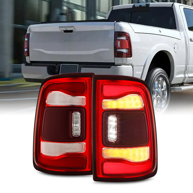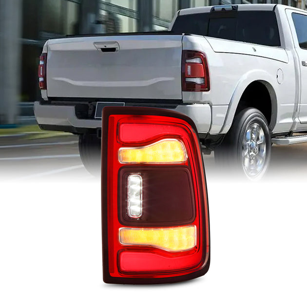 AKKON - Fit 2019-2024 Ram 2500 3500 LED SwitchBack Turn Signal Red Bezel Tail Lights Left+Right w/o Blind Spot Detection