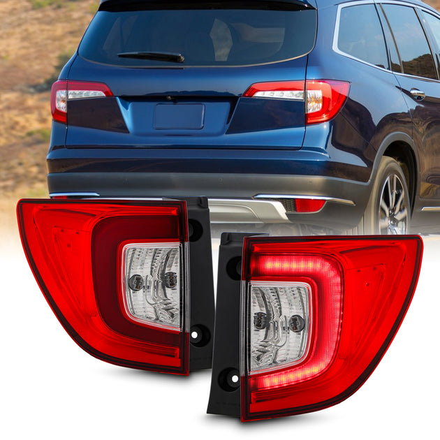 AKKON - Fits 2019-2021 Honda Pilot LX / EX / EX-L / Elite / Touring LED Running Chrome Red Clear Tail Lights Outer Pair
