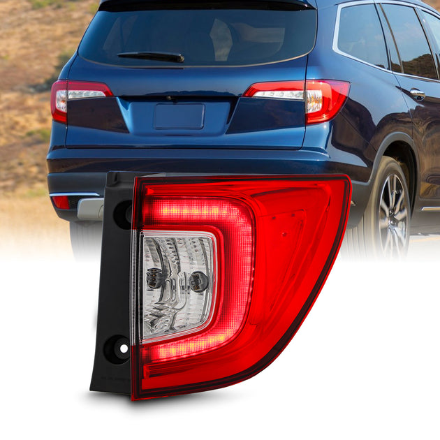 AKKON - Fits 2019-2021 Honda Pilot LX / EX / EX-L / Elite / Touring LED Running Chrome Red Tail Light Outer Driver Left