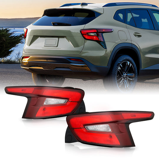 AKKON - Fits 2024-2025 Chevy Trax LED Chrome Red Tail Lights Brake Lamps Pair Driver Left+Passenger Right Replacement