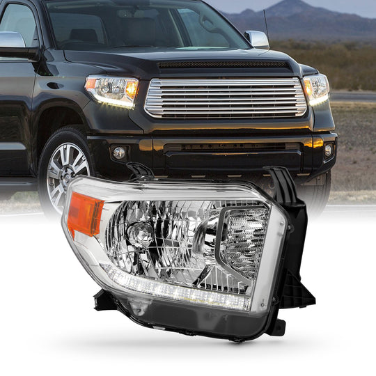 AKKON - Fit 2014-2021 Toyota Tundra Pickup Halogen Type w/LED DRL Headlight Headlamp OE Style Chrome Housing Passenger Right Side Direct Replacement