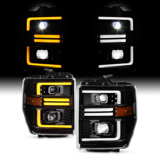 AKKON - Fit 2008-2014 Ford E150 E250/ E350-E450 SuperDuty 08-19 / F650 F750 16-17 w/LED DRL Projector Headlights Headlamp Black Housing Replacement Pair