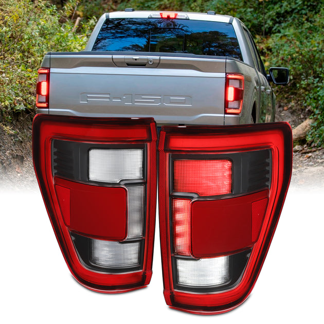 AKKON - Fit 2021 2022 2023 Ford F150 Pickup Truck 21-23 w/Blind Spot Black Appearance Pkg LED Tail Light OE Style Black Pair/Set