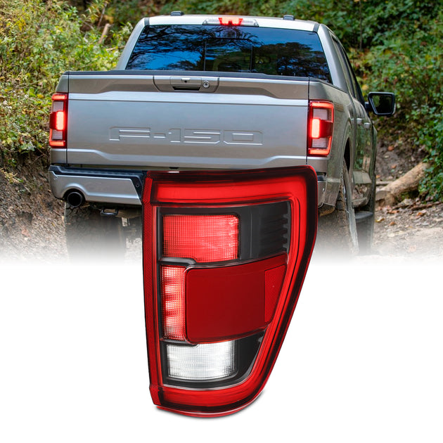 AKKON - Fit 2021 2022 2023 Ford F150 Pickup Truck 21-23 w/Blind Spot Black Appearance Pkg LED Tail Light OE Style Driver Left Black