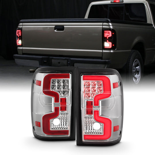 AKKON - Fit 2001-2011 Ford Ranger 01-11 LED Tube Tail Lights Rear Brake with Running Lamp Chrome Housing Driver - Passenger Direct Replacement