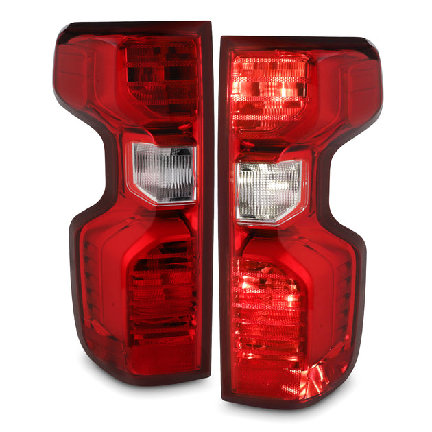 AKKON - Fits 2019-2021 Chevy Silverado 1500 2500HD 3500HD [Halogen Type] Chrome Red Tail Lights Pair Driver Left+Passenger Right