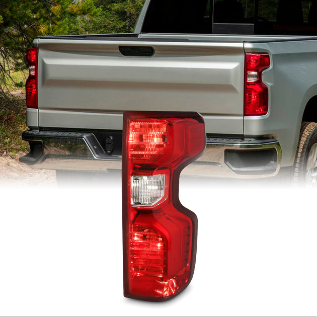 AKKON - Fits 2019-2021 Chevy Silverado 1500 2500HD 3500HD [Halogen Type] Chrome Red Tail Light Driver Left Side Replacement