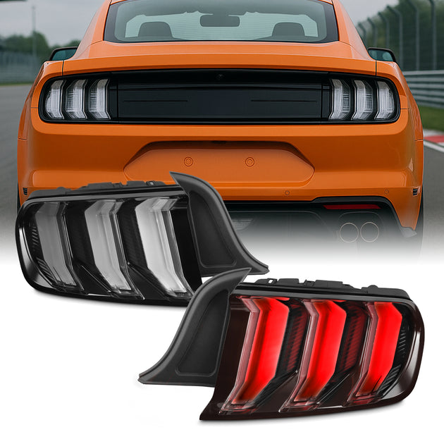 AKKON - Fits 2018-2023 Ford Mustang [Full LED] Running Sequential Turn Signal Black Clear Tail Lights Brake Lamps Pair