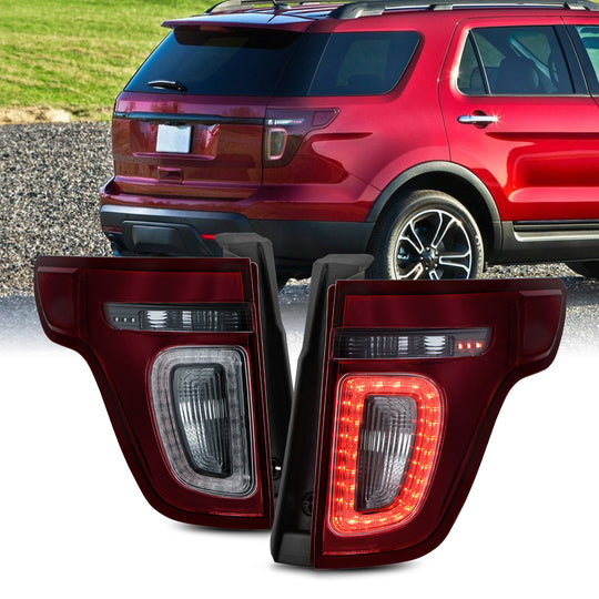 AKKON - Fit 2011 2012 2013 2014 2015 Ford Explorer Sport Package Dark Red LED Tail Lights Rear Brake Lamp OE Style Driver Passenger Assembly