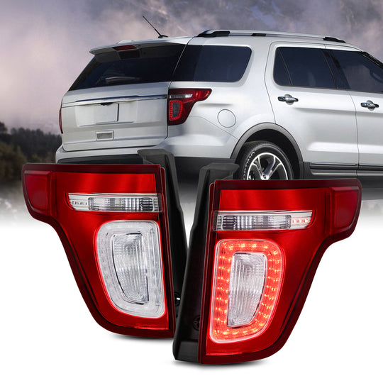 AKKON - Fit 2011 2012 2013 2014 2015 Ford Explorer LED Tail Lights Rear Brake Lamp OE Style Assembly Red Clear Lens Driver - Passenger