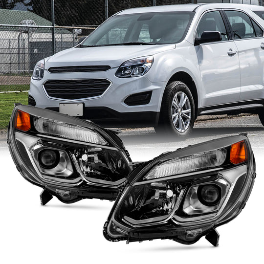 AKKON - Fit 2016 2017 Chevy Equinox SUV Halogen Type Front Projector Headlights Headlamp Driver and Passenger OE Style Chrome