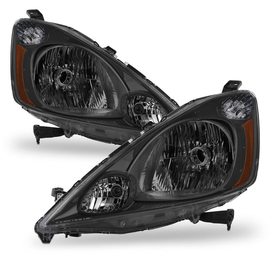 AKKON - Fit 2009 2010 2011 2012 2013 2014 Honda Fit Iron Grey Housing Halogen Headlights Headlamp OE Style Driver - Passenger Replacement