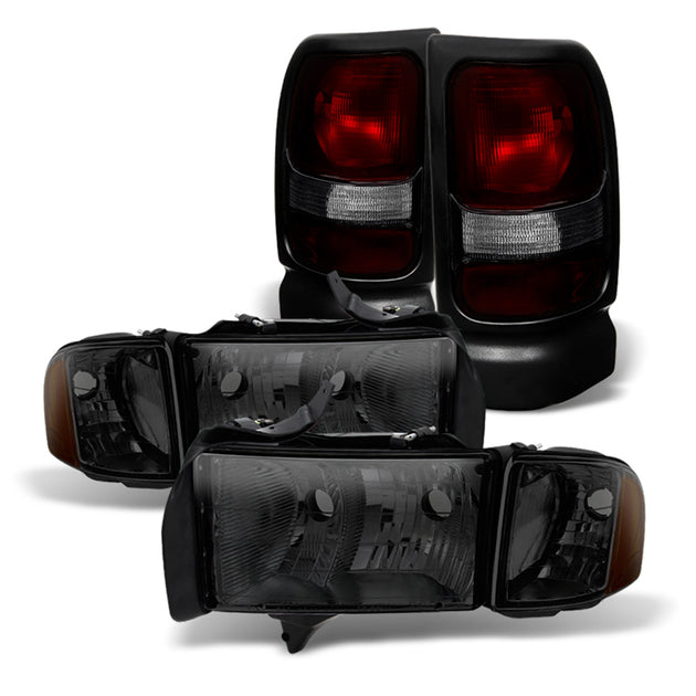 AKKON - Fits 1999 2000 2001 Dodge Ram 1500 Sport Models Smoked Headlamps + Dark Red Tail Lights Replacement Combo Pair LH+RH