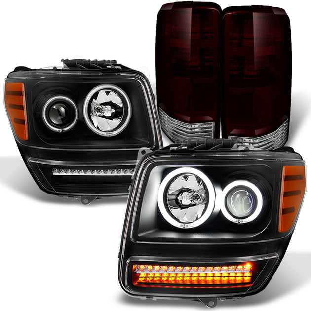 AKKON - For 2007-2012 Nitro Dual CCFL Halo Black Projector LED Signal Headlights + Dark Red Tail Lights Combo