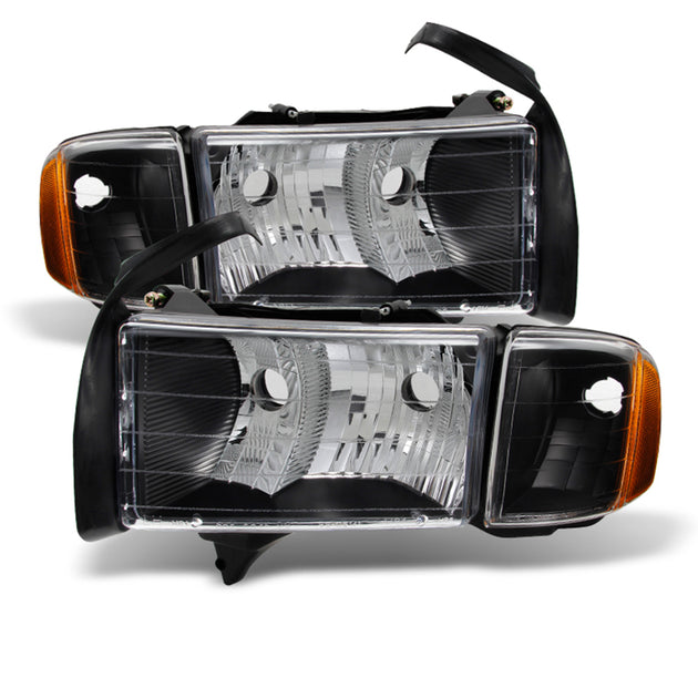 AKKON - Fits 1999-2001 Dodge Ram 1500 Sport Models Black Headlights +Dark Red Smoked Tail Lights Pair combo Replacement