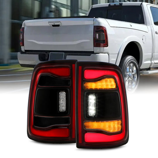 AKKON - Fit 2019-2024 Dodge Ram 2500 3500 [Incandescent Upgrade] Black Bezel w/ Smoke Signal LED Tail Light Rear Brake Lamp Assembly Driver - Passenger