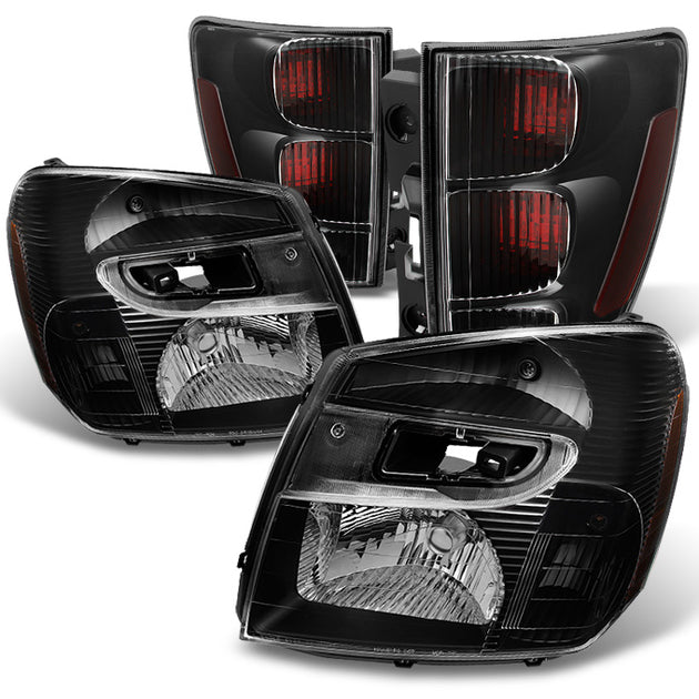 AKKON - For Chevy Equinox Black Headlights + Dark Red Tail Lights Driver Left & Passenger Right Replacement Pair