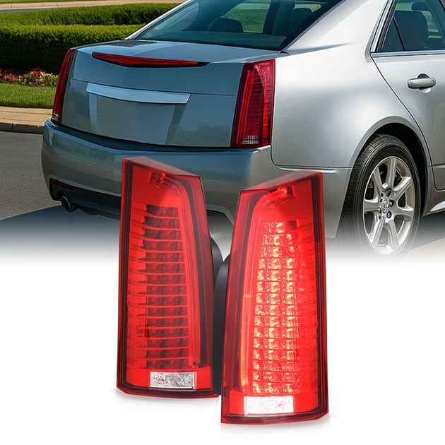 AKKON - Fits 2008-2013 Cadillac CTS Sedan 4Door Chrome Red Tail Lights Pair Driver+Passenger w/ LED Running Reverse Lamp Regular price $349.99