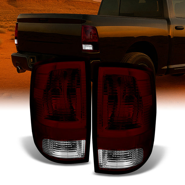 AKKON - For 09 10-18 Dodge Ram 1500/2500/3500 Pickup Rear Dark Red Smoked Tail Lights Driver Left + Passenger Right Side Pair