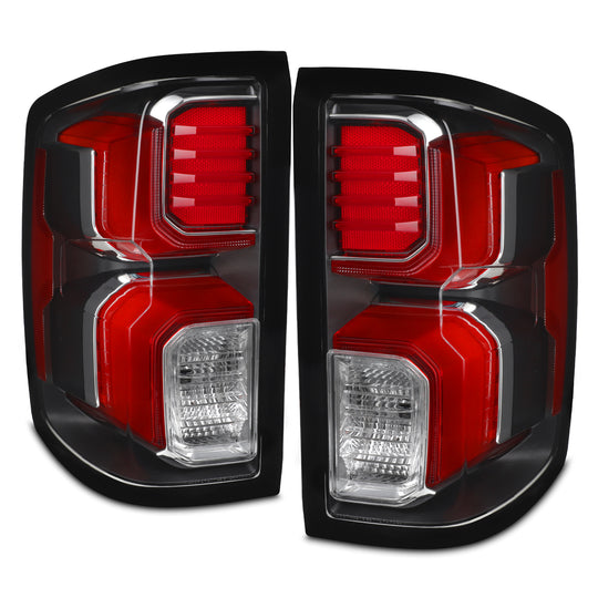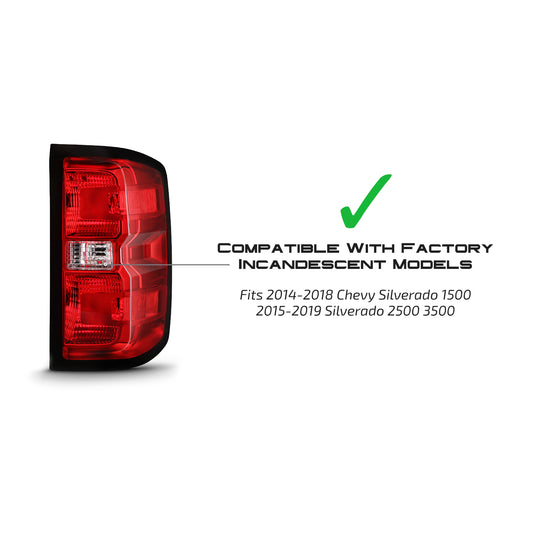 AKKON - Fit 2014-2019 Chevy Silverado 1500 2500 3500HD [Incandescent Upgrade] LED Tail Lights Assembly Driver & Passenger Black Housing Lamp