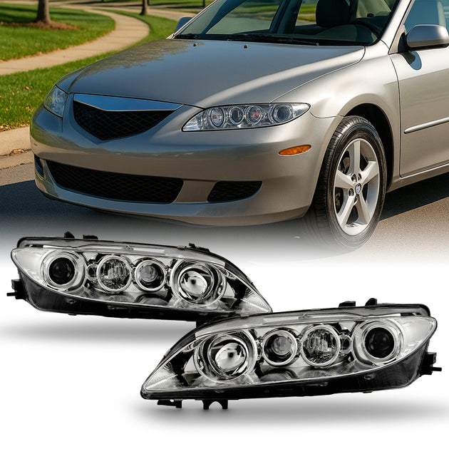 AKKON - Fit 2003 2004 2005 Mazda 6 03-05 Halogen Type Projector Headlights Headlamp Chrome Housing Driver - Passenger OE Style Direct Replacement Regular price $188.99