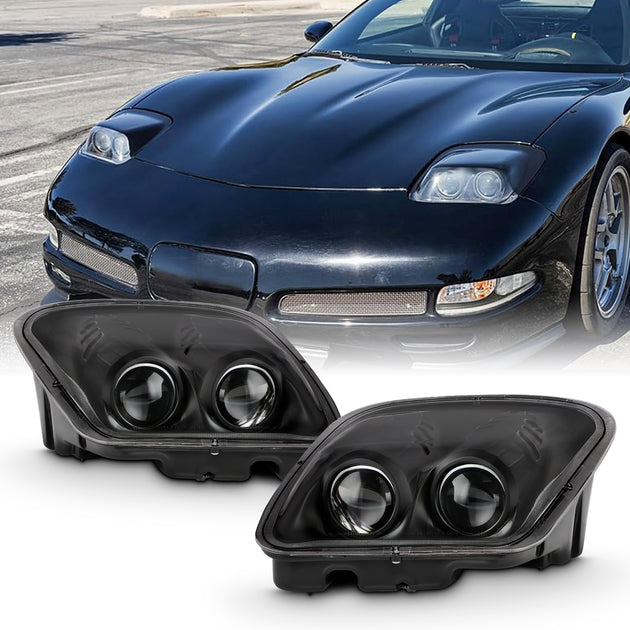 AKKON - Fit 1997-2004 Chevy Corvette C5 97-04 Projector Headlights Headlamp Black Housing Driver - Passenger Side OE Style Direct Replacement