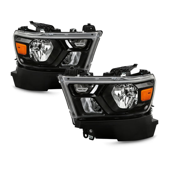 Regular price $258.99This is a 100% brand new pair of Replacement Headlights in Black Housing Clear Lens Compatible With: 2019-2020 RAM 1500 w/ Black Bezel Halogen Type Headlight Model ATTN: Compatible w/ Black Bezel Halogen Type Headlight Model... -