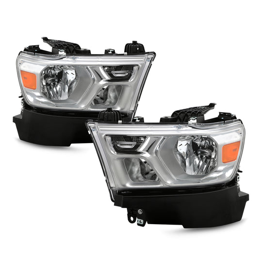AKKON - Fits 2019-2020 RAM 1500 Pickup Truck [Halogen Type] Headlights w/Chrome Bezel Headlamp Pair Driver+Passenger Replacement